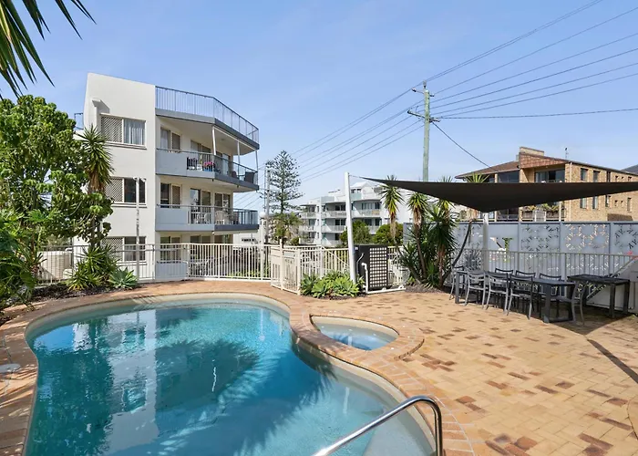 Das Aparthotel befindet sich im Stadtviertel Kings Beach. Zum Stadtzentrum von Caloundra sind es nur 15 Gehminuten. In einer Entfernung von 5 Minuten zu Fuß vom Kings Way Caloundra gibt es sowohl Happy Valley, als auch Clarke Place Park. Die Bushaltestelle Caloundra ist in einer 850 Meter Entfernung von der Unterkunft, während Ben Bennett Botanical Park rund 2 Kilometer von hier entfernt ist.